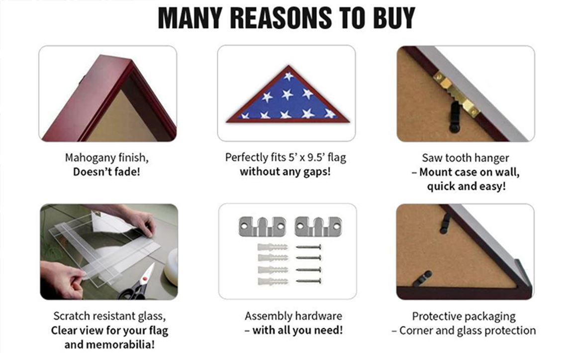 Thiết kế Thông minh: Hộp trưng bày lá cờ tưởng niệm này được thiết kế dành cho bạn. Mặt sau có thể tháo rời sử dụng các kẹp kim loại xoay đóng thành rãnh để đảm bảo hộp cờ sẽ không bị bung ra. Kính dày chất lượng cao để bảo vệ lá cờ gấp của bạn trong khi trưng bày nó một cách tự hào.